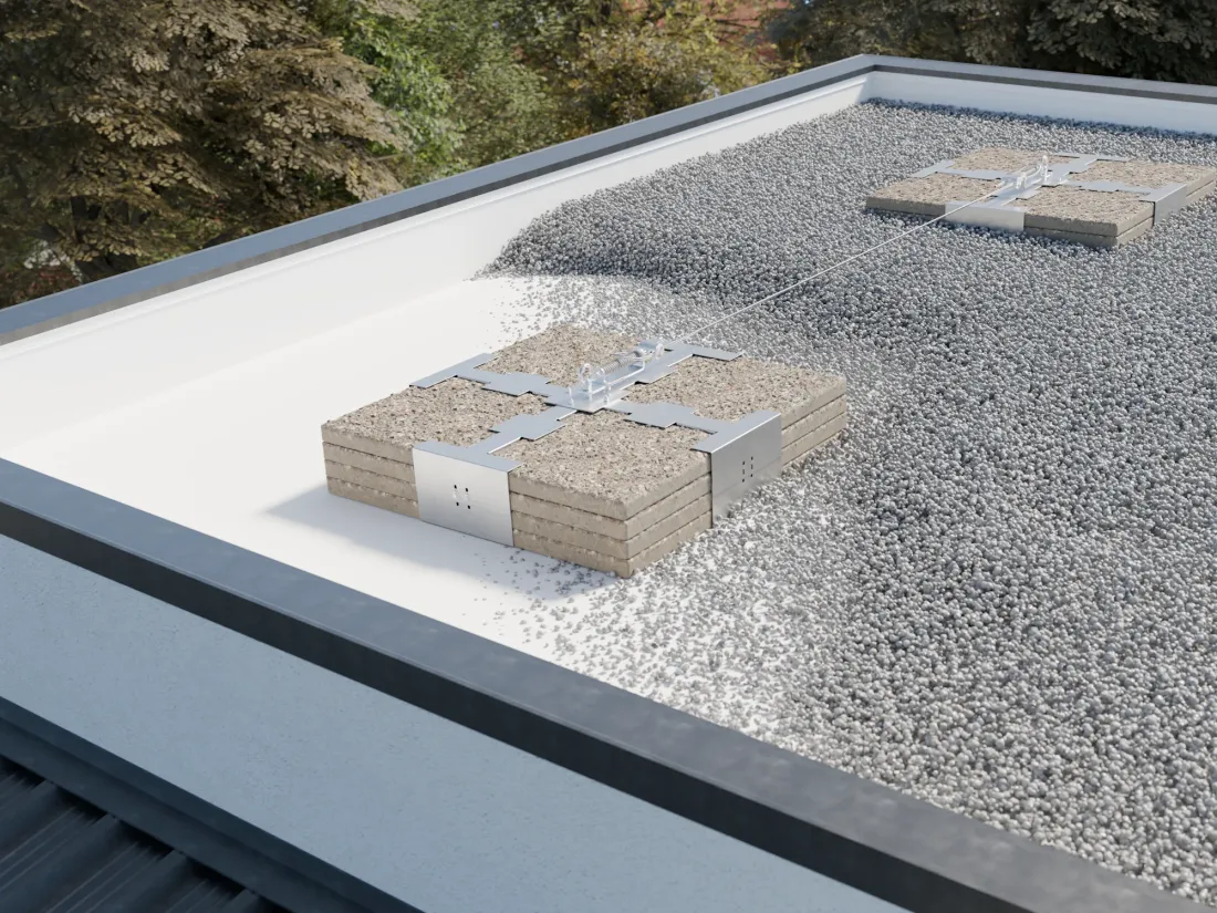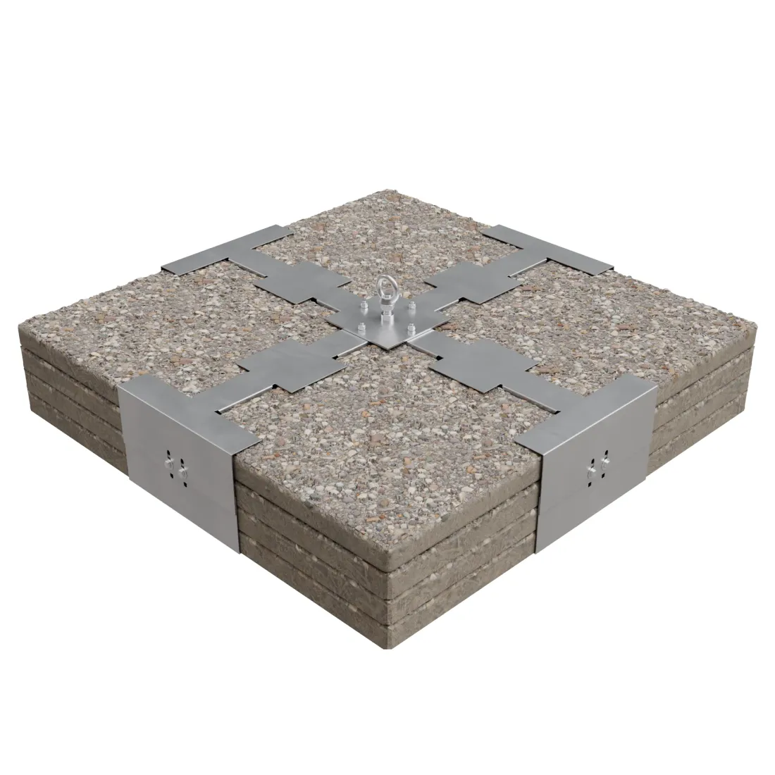 Il SafeGuard Ballast è un innovativo punto di ancoraggio particolarmente indicato per tetti piani, tetti inclinati e tetti industriali. La sua particolarità risiede nel fissaggio tramite zavorramento. A tal fine sono necessarie 16 lastre di cemento delle dimensioni 500 x 500 x 50 mm o 20 lastre delle dimensioni 500 x 500 x 40 mm. Si prega di notare che le lastre di cemento non sono incluse nella fornitura.