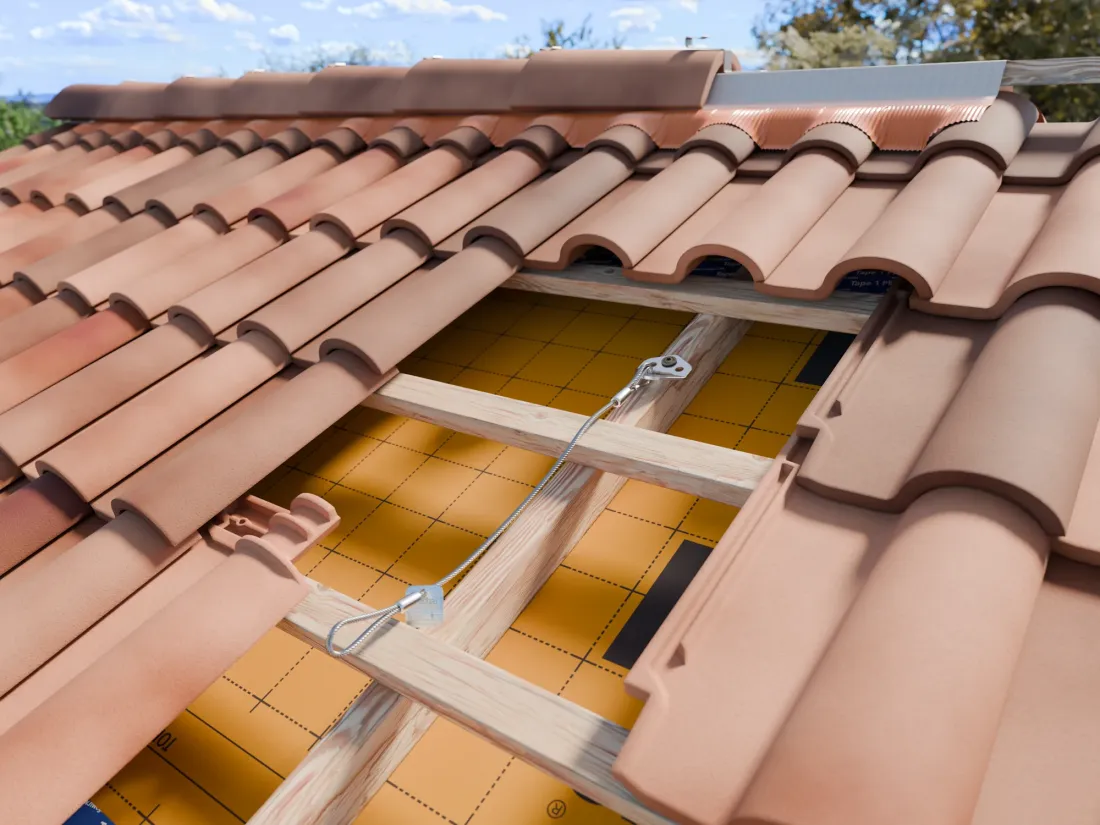 Il C-RED Universal I è uno speciale punto di ancoraggio singolo progettato per tetti a falda. È versatile e può essere montato su diversi tipi di superficie, tra cui acciaio, cemento e legno.